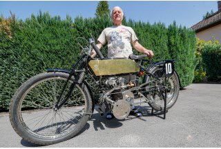 Passionné de motos anciennes, Jean Boulicot s'était lancé dans un pari un peu fou : reconstruire à l'identique une moto Peugeot 500 M1 de 1914. Dessinée par l'ingénieur suisse Ernest Henry, cette moto n'a été produite qu'à trois exemplaires. A partir des plans d'origine, retrouvés par hasard par un ami archiviste au musée Peugeot, le collectionneur d'Evette-Salbert a mis plus de dix ans pour réaliser ce rêve.